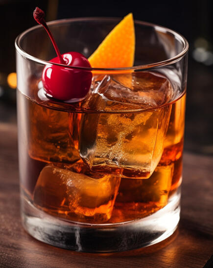 A popular favorite from Ul'dah. Whitebrim Bourbon with three dashes of bitters, a bit of sugar, and a splash of water, garnished with a twist of orange and a cherry.