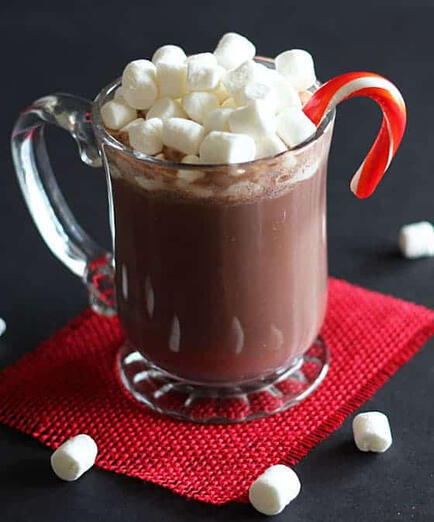 This special hot cocoa will put you right in the Starlight Spirits! Hot cocoa with a shot of coffee liqueur and a dash of cinnamon. Garnished with lots of marshmallows and a candy cane for stirring.