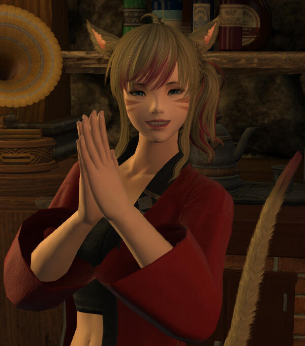 In the dark of night, the stars called to you. It was so cold, so very cold... but you pressed on, following that starlight. Every step through that void a struggle, every ilm claimed a triumph. You were so tired, so very tired.You heard something in the distance. The strum of a harp, a faint laugh, you saw a light... Then, it was there. A lantern outside a door. Your pace quickened, your heart raced, and slowly, oh so slowly, the door came near. With the last of your strength, you pushed the door wide, and stepped in...Warmth. Safety. Flickering candlelight caught your eye, soft music, cheerful voices, and running water enticed your ears. You descended the stairs, finding what you head been searching for. Kindness, relaxation, a place just to be.A catte ran past you, being thwacked around the head by a magically animated menu from a spell gone wrong, while another catte chased, ineffectually trying to help. You smiled.You were with friends.